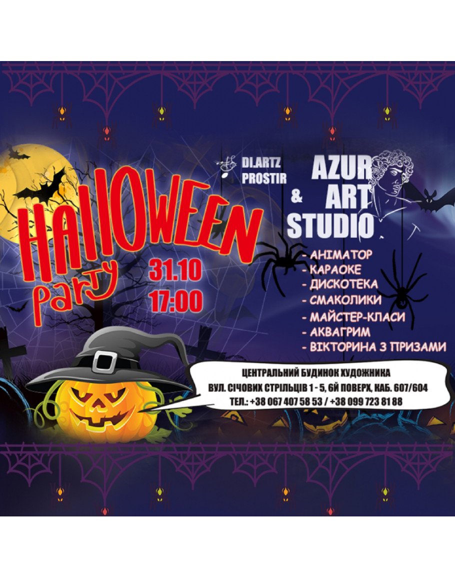 AZUR-ART STUDIO & DiArtz.Prostir запрошують маленьких монстриків на свято Halloween у стилі фільму “Монстри на канікулах”! Деталі та запис: +38 (099) 723 81 88 (Viber, WhatsApp, Telegram) +38 (067) 407 58 53 (Viber, Telegram)