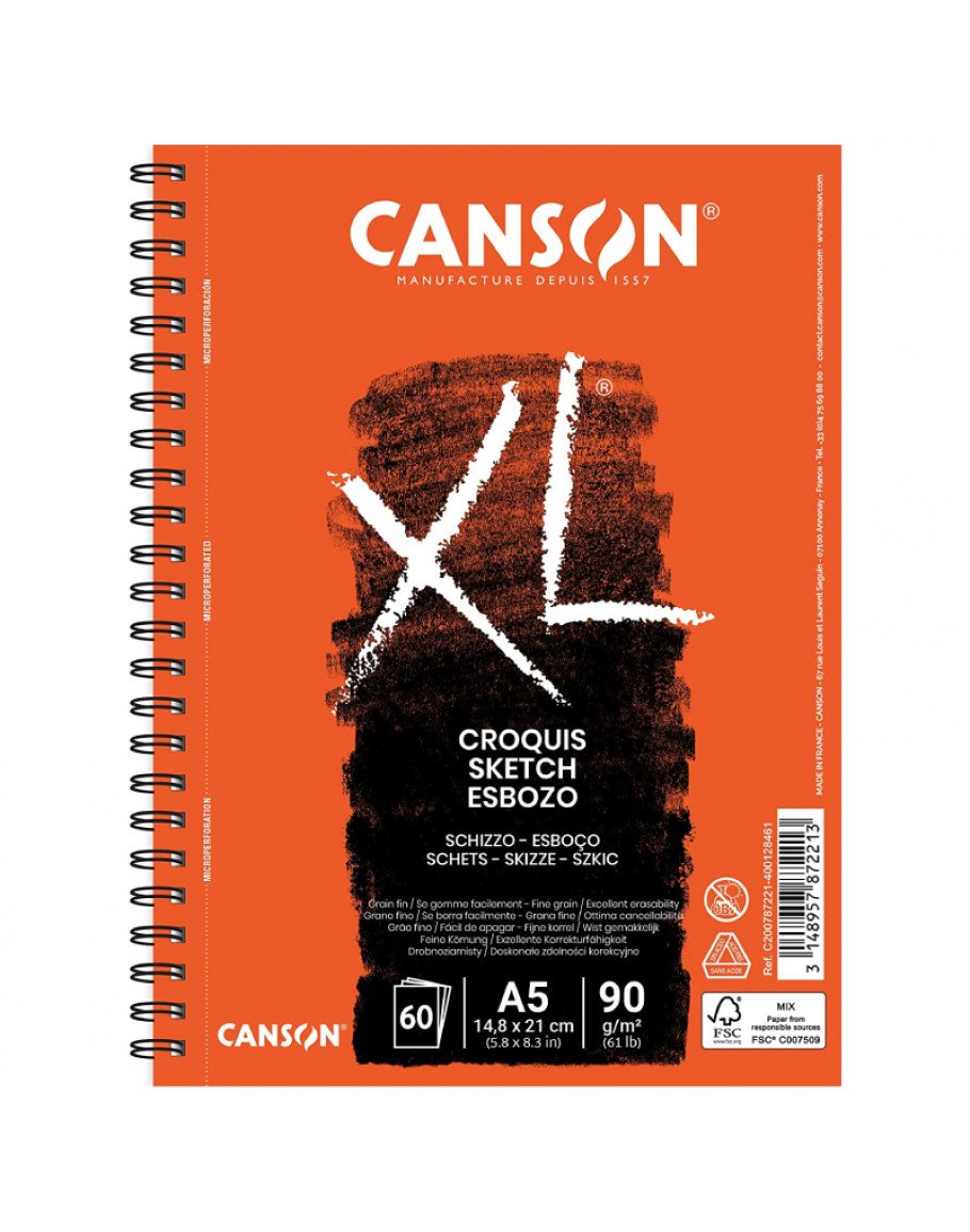 Альбоми для ескізів серія XL, спіраль, 90г / кв.м А5, 60 аркушів, слонова кістка - 0787-220 - Папір для малювання та графіки
