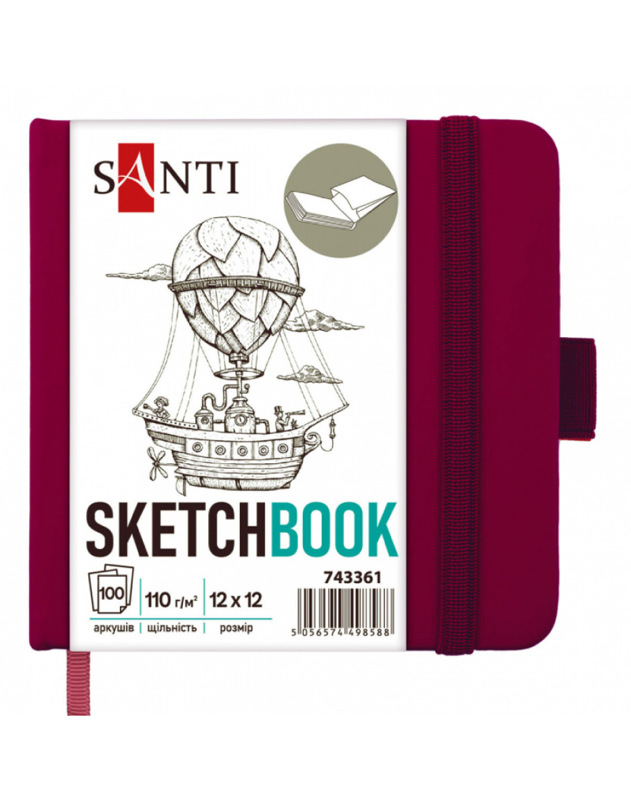 Cкетчбук для графіки 12*12 см, 100 арк., 110 г/м2, тверда обкладинка PU сливова, Santi