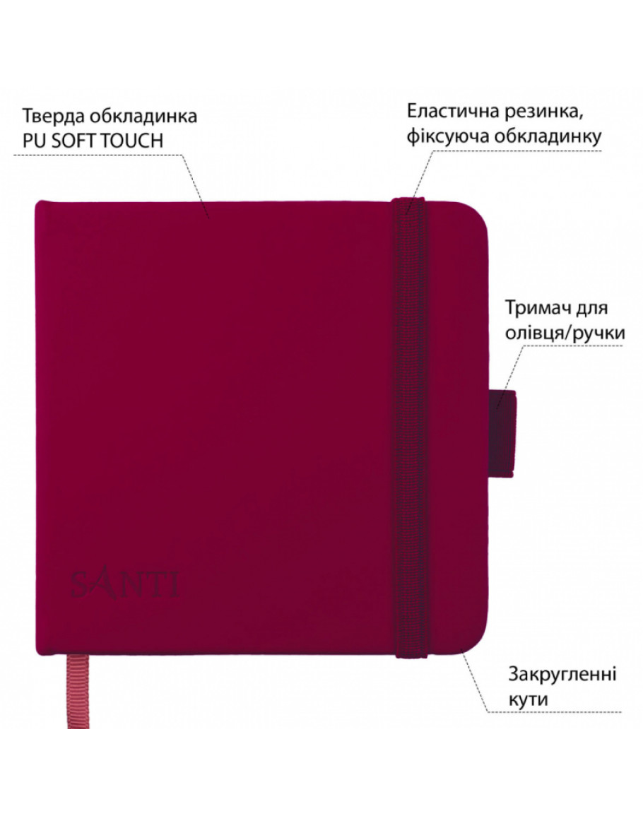 Тверда PU-обкладинка SOFT-TOUCH забезпечує зручність замальовок. Петля-тримач для ручки або олівця гарантує, що ваш інструмент завжди буде під рукою. Усередині 100 аркушів паперу кремового кольору щільністю 110 г/м2. Завдяки безкислотному складу паперу, який використовується в блокноті ТМ SANTI, ваші роботи збережуться на довгі роки, а гладка поверхня паперу з ледь відчутною текстурою забезпечить плавне ковзання олівця або ручки на аркуші, даючи змогу створювати деталізовані та виразні роботи. Спеціально закруглені кути скетчбука захистять ваш рюкзак або сумку від пошкоджень, а еластична гумка-фіксатор надійно утримає сторінки та захистить їх від заминання.