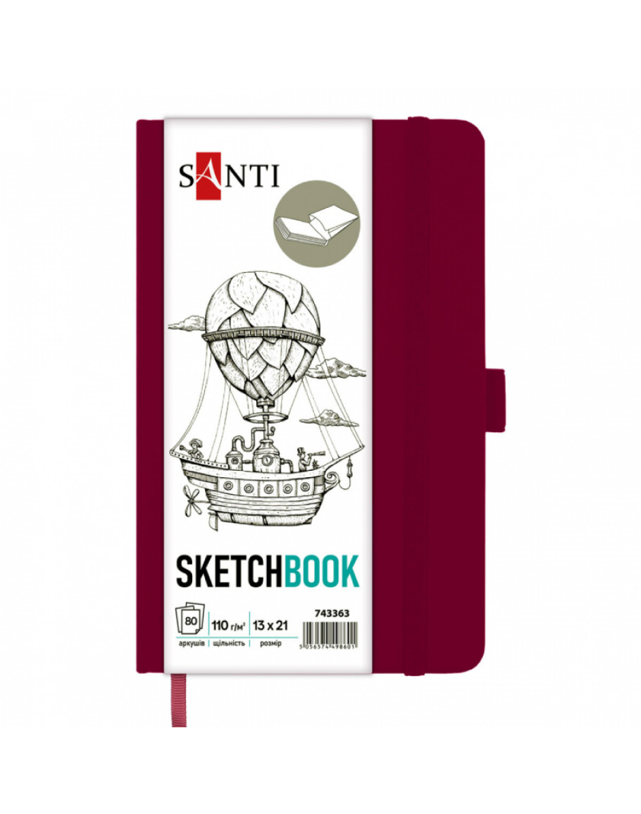 Cкетчбук для графіки 13*21 см, 80 арк., 110 г/м2, тверда обкладинка PU сливова, Santi