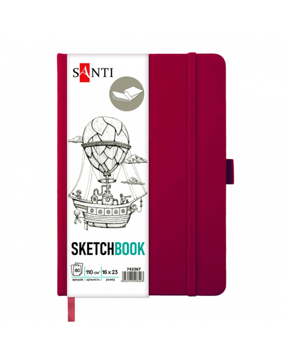 Скетчбук SANTI підходить для робіт лінерами, олівцями, тушшшю, пастеллю, вугіллям, акварельними маркерами. Ідеальний для скетчингу, каліграфії, архітектурних начерків та інших видів творчості.