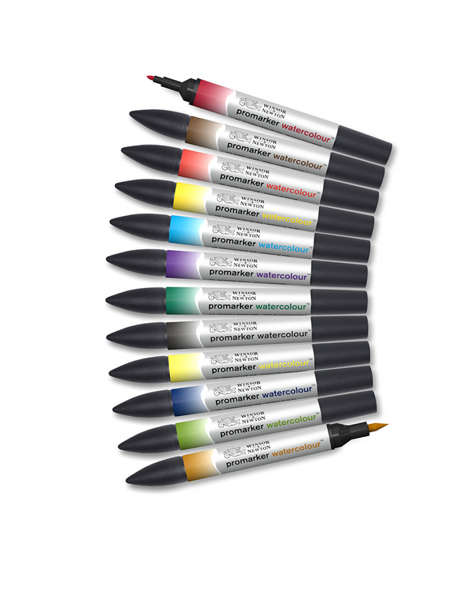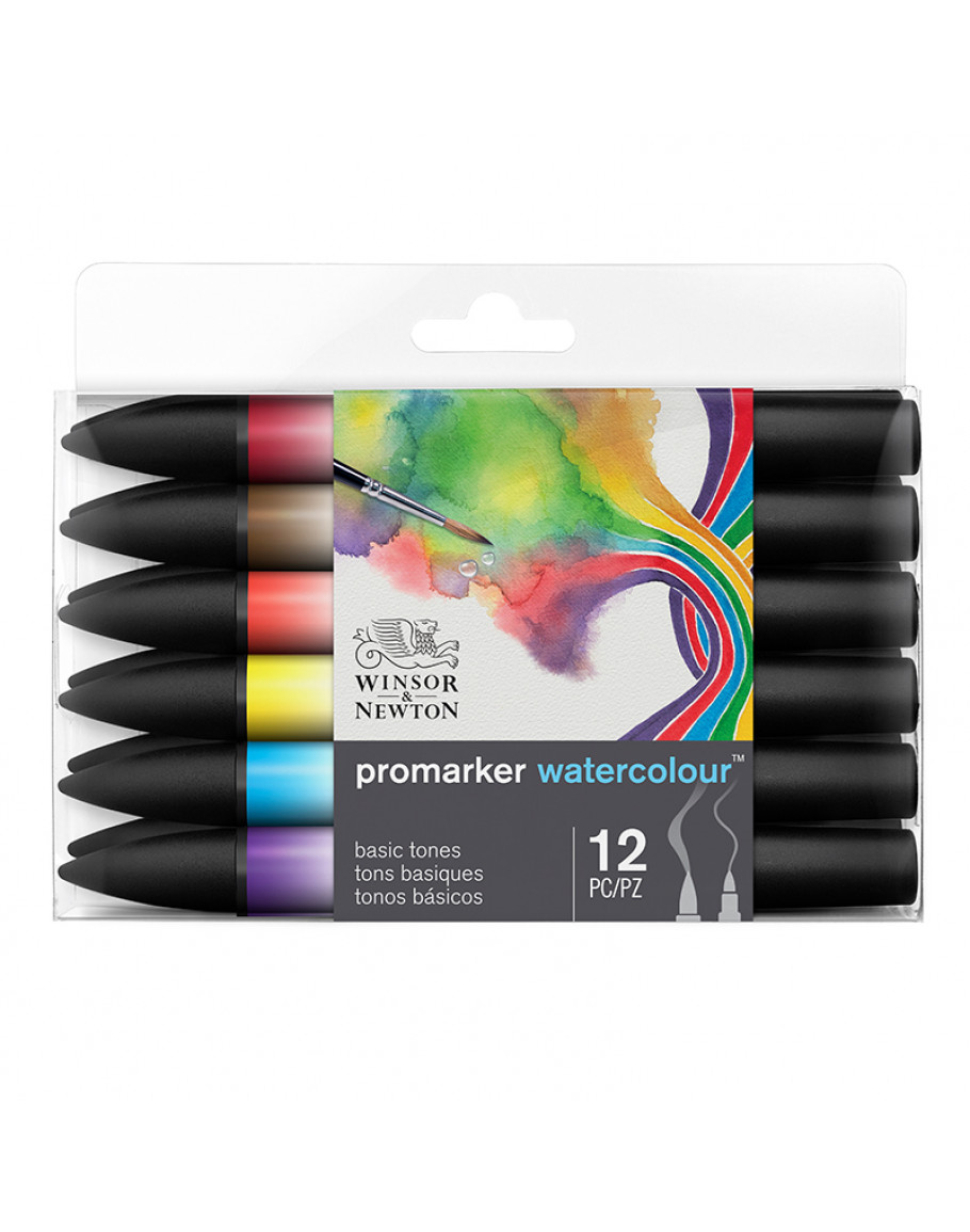Promarker Watercolour Basic Tones, 12 шт. Набір з 12 насичених базових кольорів - універсальний інструмент для творчості. Висока пігментація, подвійний наконечник, ідеально підходять для акварельних технік та ілюстрацій