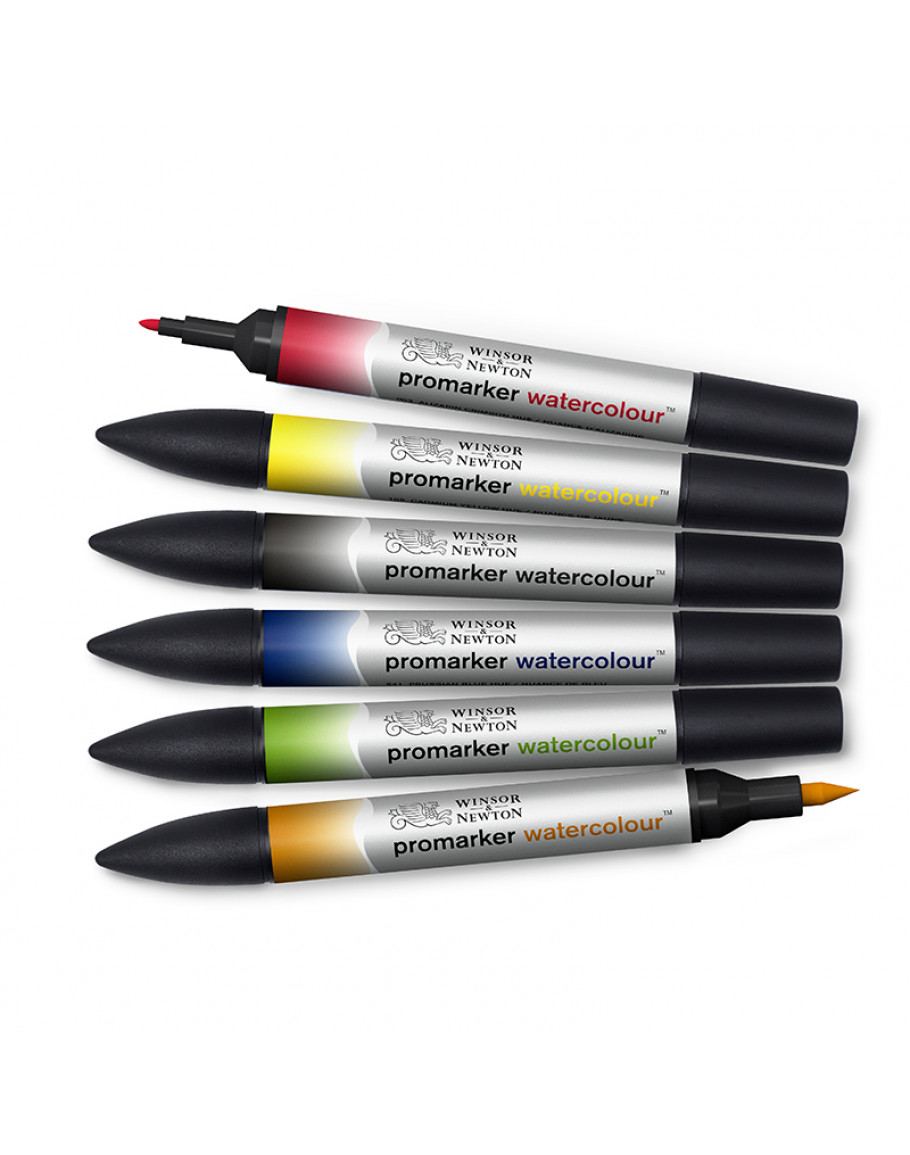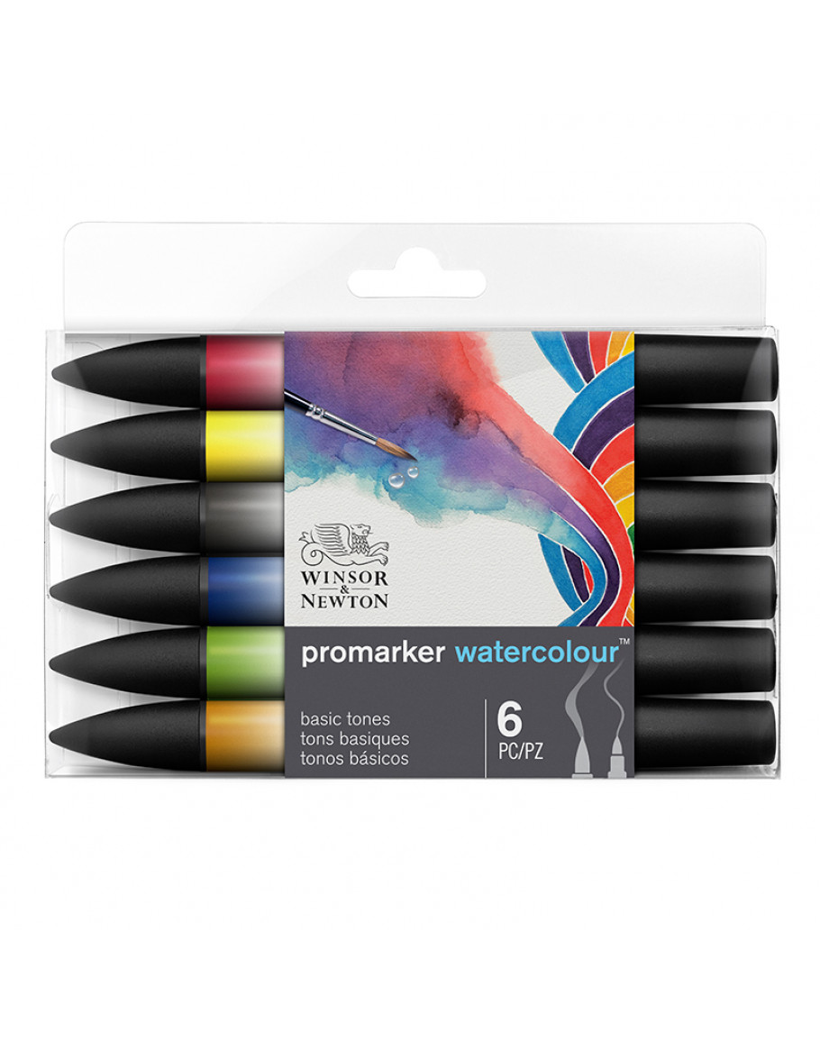 Promarker Watercolour Basic Tones, 6 шт. Набір з 6 базових кольорів для створення акварельних ефектів. Висока пігментація, подвійний наконечник, ідеально підходять для акварельних технік та ілюстрацій