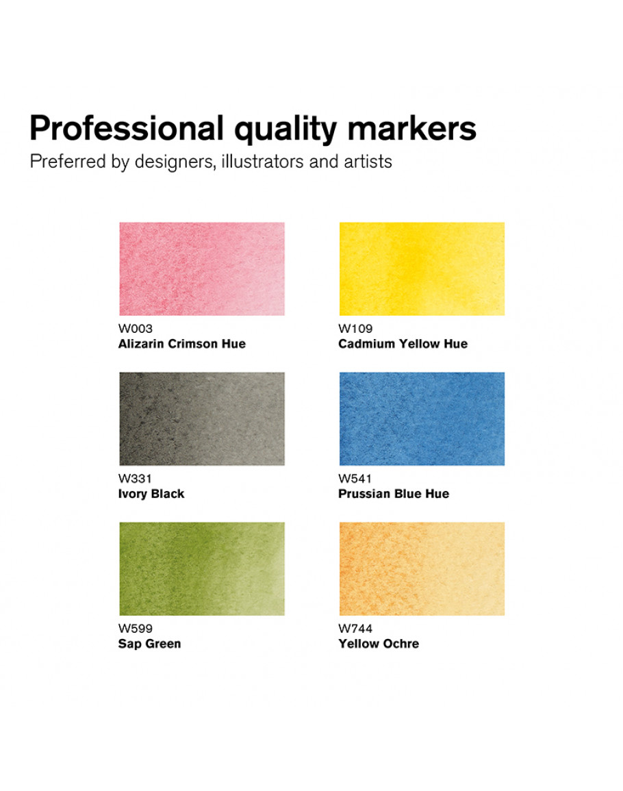 Набір акварельних маркерів Winsor & Newton Promarker Watercolour — це універсальний інструмент для створення витончених акварельних ефектів. Чорнила на водній основі мають високу пігментацію та світлостійкість, що забезпечує яскраві й довговічні результати.