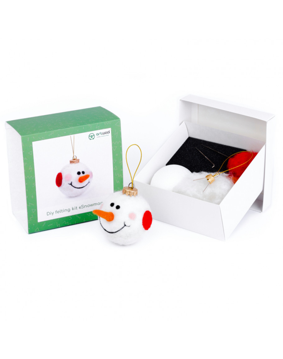 У набір для валяння Diy felting kit "Snowman" (eng) входять всі необхідні матеріали для створення: