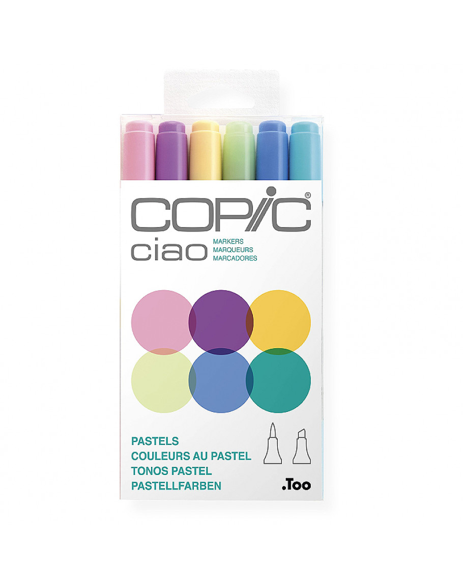 Набір спиртових маркерів Copic Ciao Set "Pastels". Назва набору: Copic Ciao Set "Pastels". Кількість маркерів: 6. Країна виготовлення: Японія. Чорнила та перо замінюються.