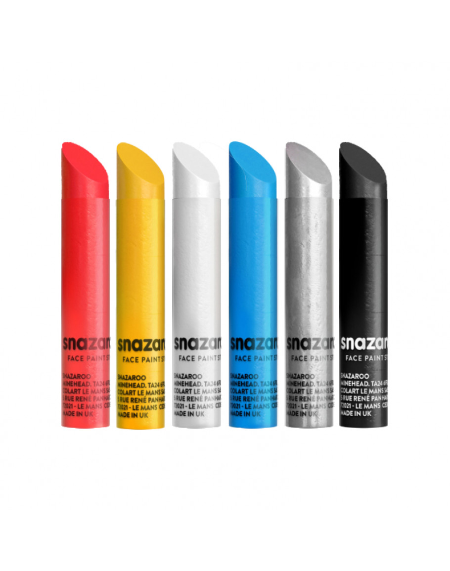 Набір для гриму Snazaroo "Adventure" — набір з 6 кольорів: білий, чорний, червоний, жовтий, сріблястий та бірюзовий. Ідеальні для святкового фейс-арту. Не потребують води для активації. Гіпоалергенні, нетоксичні, легко змиваються.
