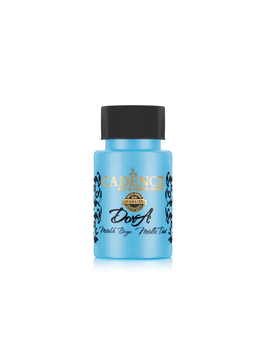 Cadence акрил Dora Metallic Paint. Укрывистая. С блестками. Разнообразные цвета. Водная основа. Объём: 50 мл. Материал упаковки: пластик. Не токсична. Производитель: Турция. Код:166. Цвет: Эгейский голубой.