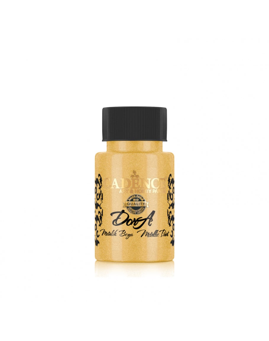 Cadence акрил Dora Metallic Paint. Укрывистая. С блестками. Разнообразные цвета. Водная основа. Объём: 50 мл. Материал упаковки: пластик. Не токсична. Производитель: Турция. Код:122. Цвет: Золото Майя.