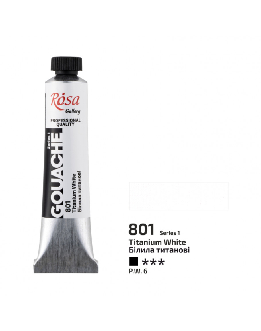 Профессиональные гуашевые краски от ROSA Gallery. Цвет: №801 Белила титановые. Фасовка: туба. Объем: 20 мл.