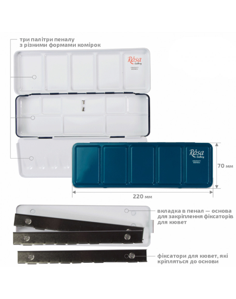 Бренд:ROSA Страна:Украина Размер:21 кювета Материал:Металл Металлический пенал для а..