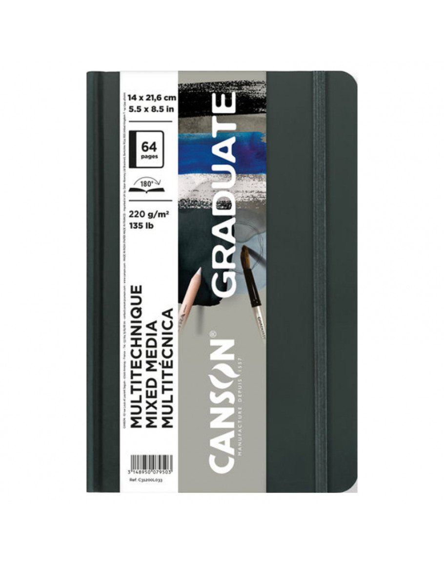 Скетчбук Canson тверда обкладинка 64 сторінки, сірі аркуші 14,8*21 см., 220 г/м2, Graduate Books Mixed Media