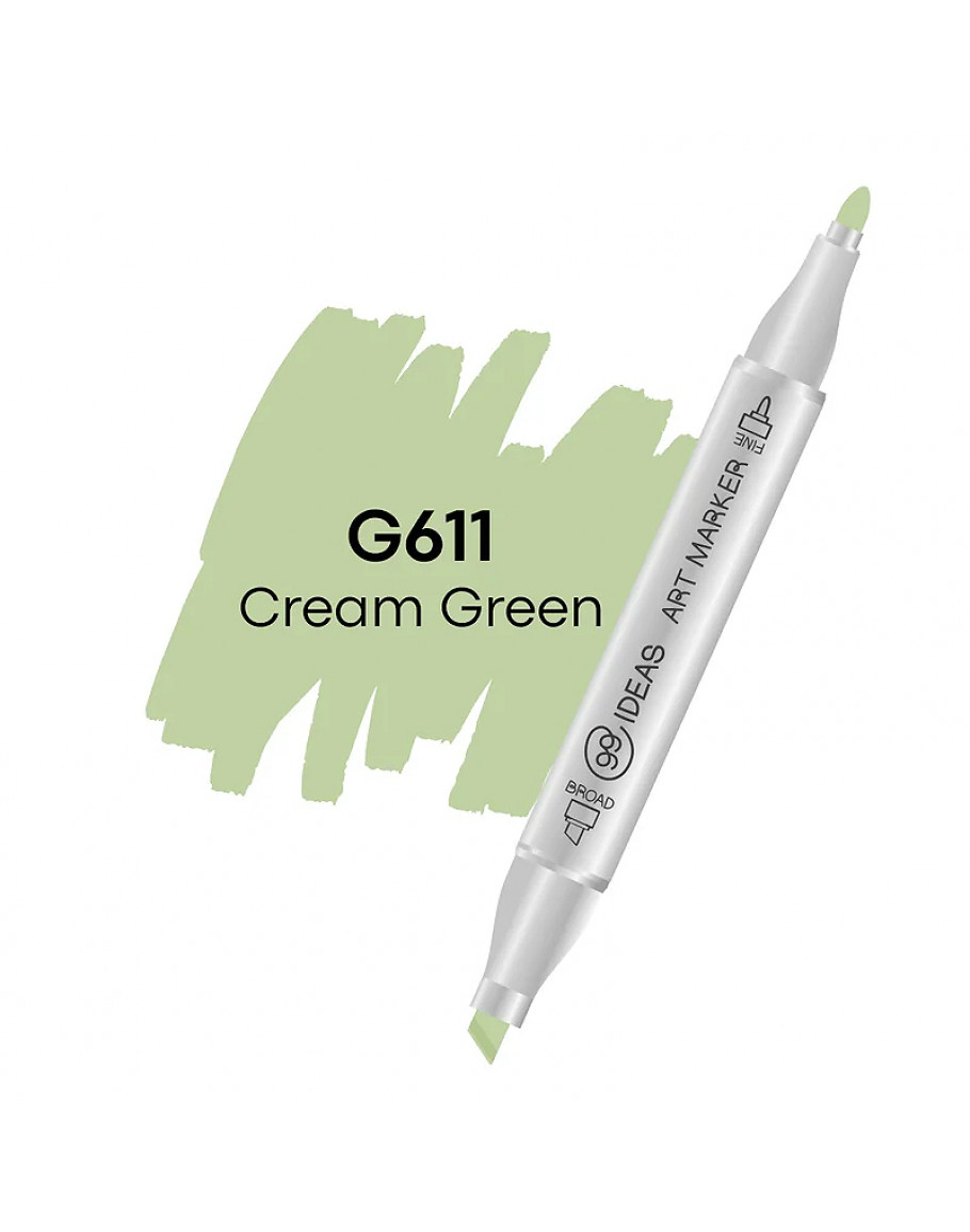 Маркер на спиртовій основі від українського бренду 99IDEAS G611 Кремово-зелений. Спиртові маркери для скетчів, фешн-ілюстрації, манга та розмальовок. Двосторонні спиртові маркери 99IDEAS.